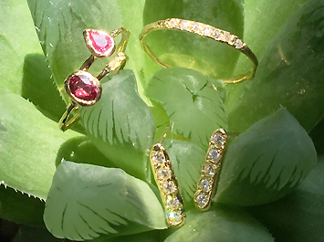 | お母様から譲り受けた、ルビーとダイヤモンドの リングとペンダントヘッド。 |